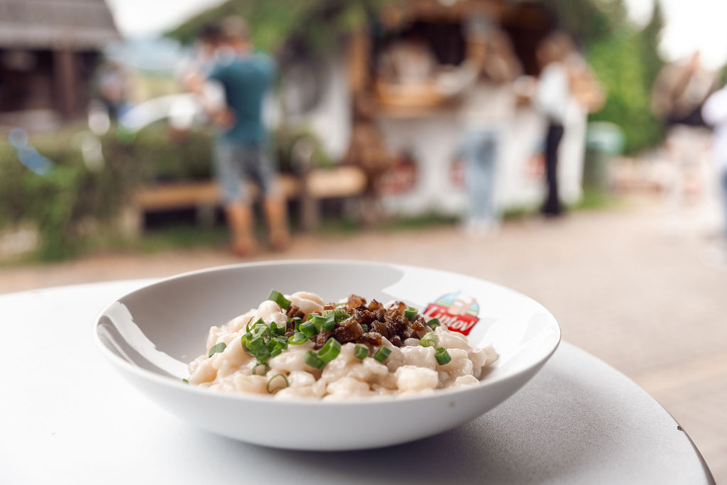 Kulturní program byl doplněný o mnoho kulinářských zážitků. Jeden takový ale rozhodně dominoval, ikonické brynzové halušky – národní jídlo Slovenska, které na festivalu vyrábíme přímo na stánku Liptov z naší výborné brynzy. Právě naši skvělou brynzu můžete objednávat i na vaše akce u našeho distributora.